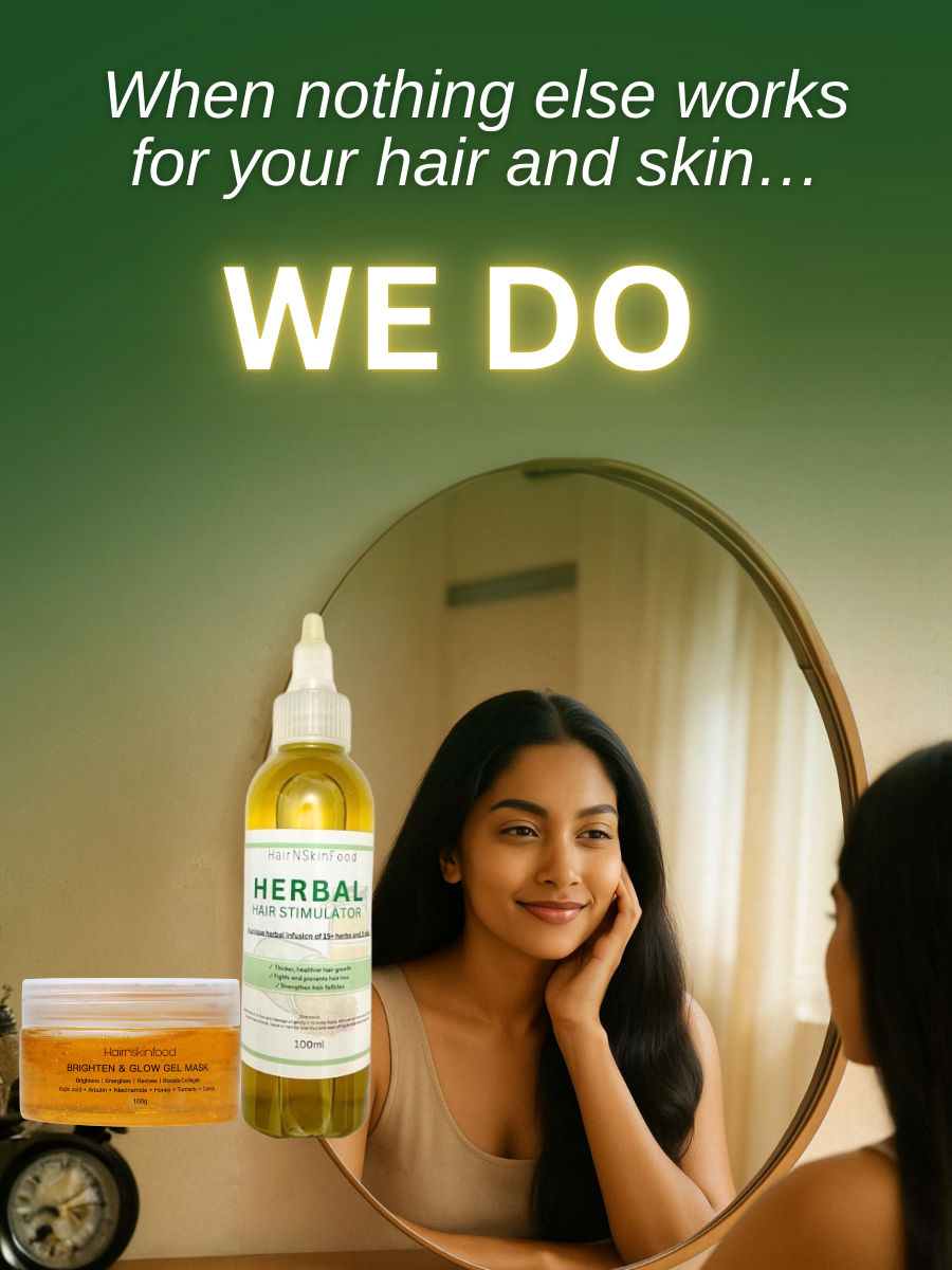 We are a natural beauty brand dedicated to transforming hair and skin health through clean, herbal formulations. Our products, made with powerful botanical ingredients, are designed to stimulate hair growth, restore glow, and nourish from the inside out. Loved by women seeking real results, we blend tradition and science to help you feel confident in your skin and hair, naturally.