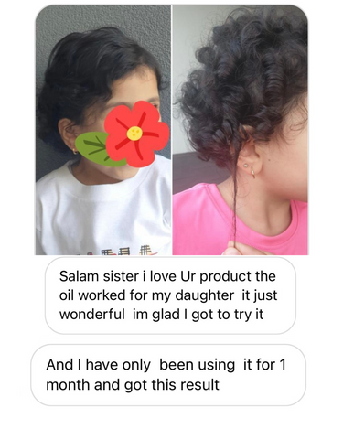 Salam sister I love ur product. The oil worked for my daughter. It’s just wonderful. I'm glad I got to try it.And I have only been using it for 1 month and got this result.